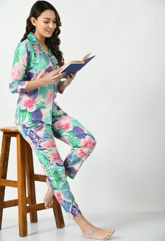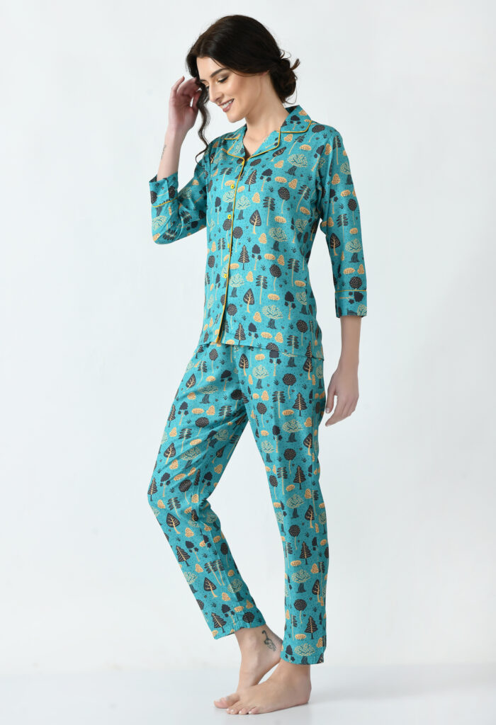 Women’s Stylish Latest Cotton Printed Night Suit Set of Shirt & Pyjama
