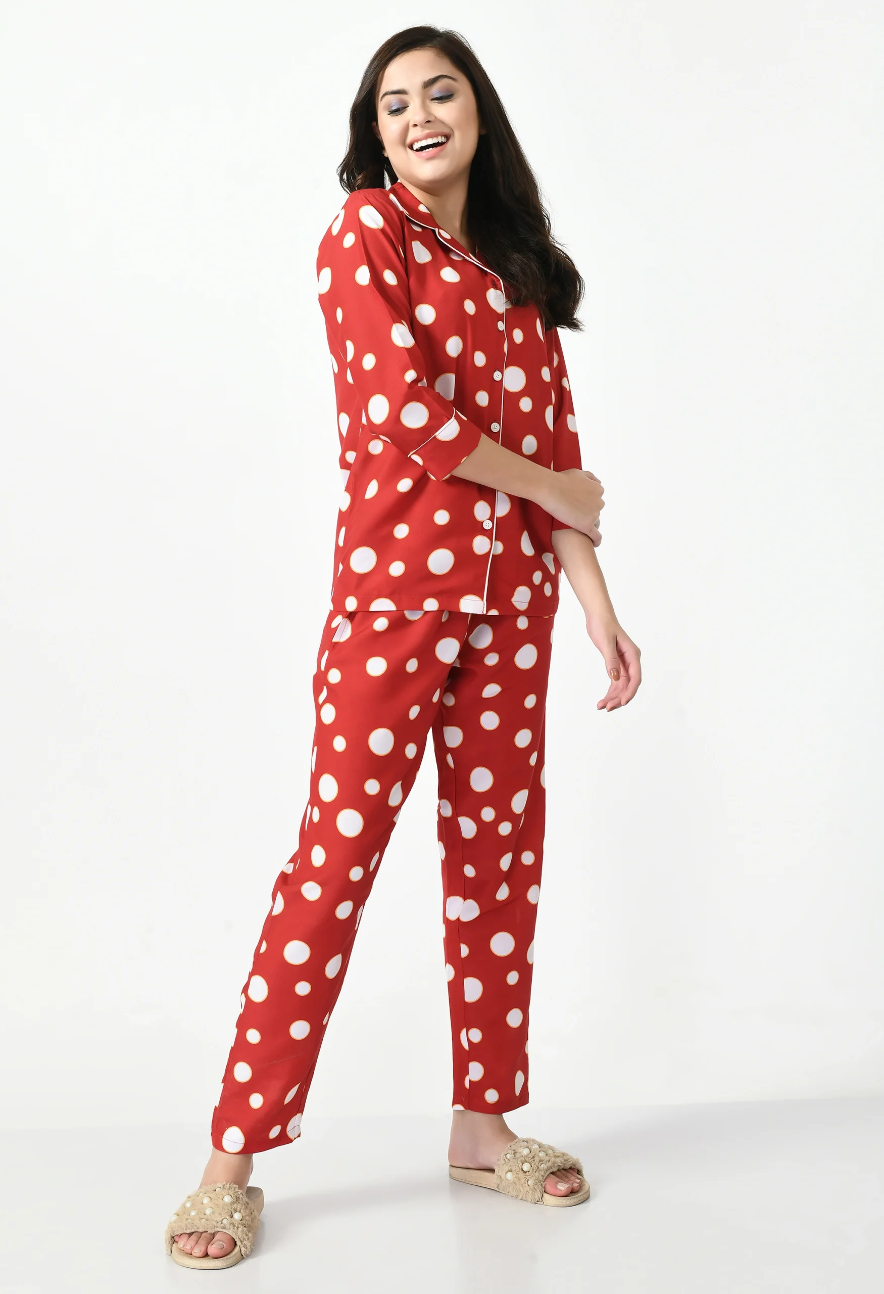 Be the first to review “Rayon Polka Dot Printed New Night Suit”